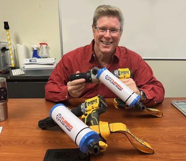 The kit includes a meticulously engineered drill pump and a custom silicon nozzle that fits all float cups snugly. Additionally, it features an aluminum anti-torque brace that secures the pump to the drill, allowing for convenient one-hand operation.